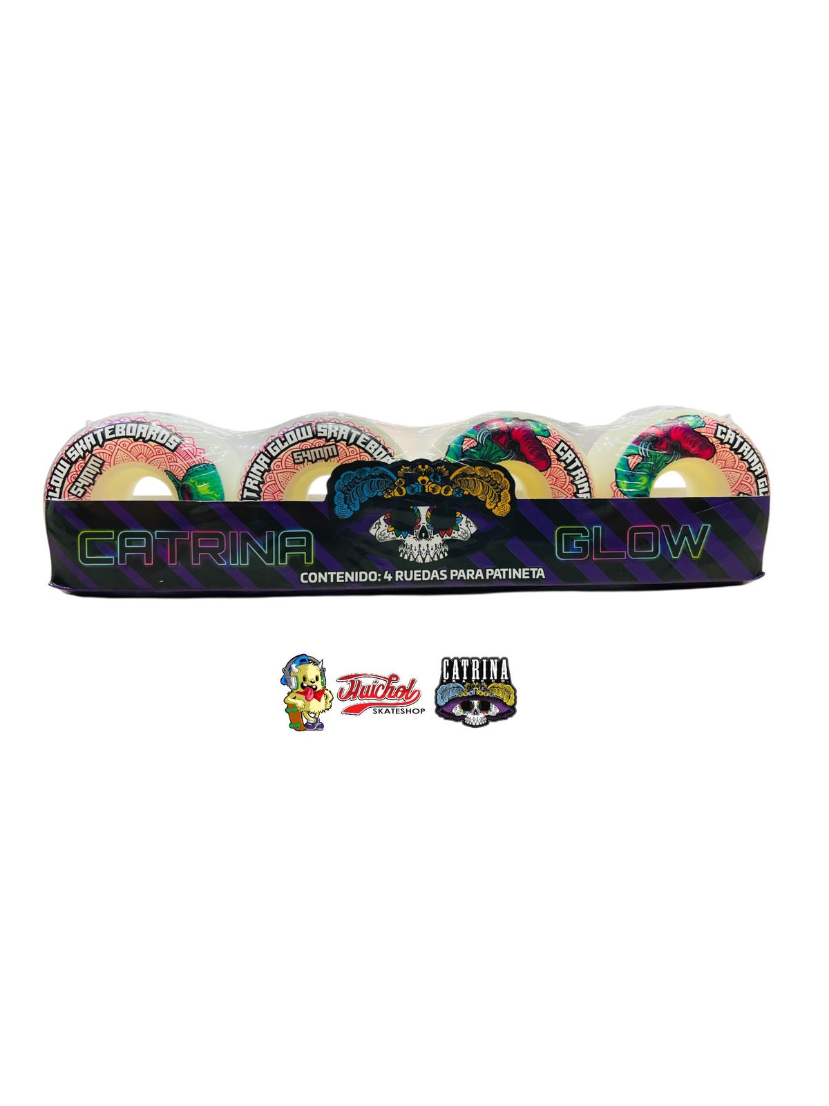 Ruedas Catrina Glow 54 mm – Estilo y agarre perfectos para tu skate diario.