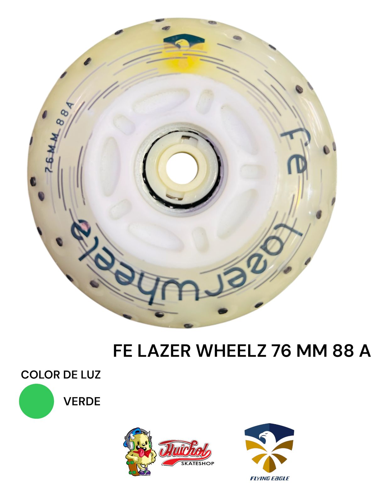 Ruedas Flying Eagle Fire FE Lazer 76 mm 88A con luz verde, resistentes y brillantes para patinaje urbano nocturno.