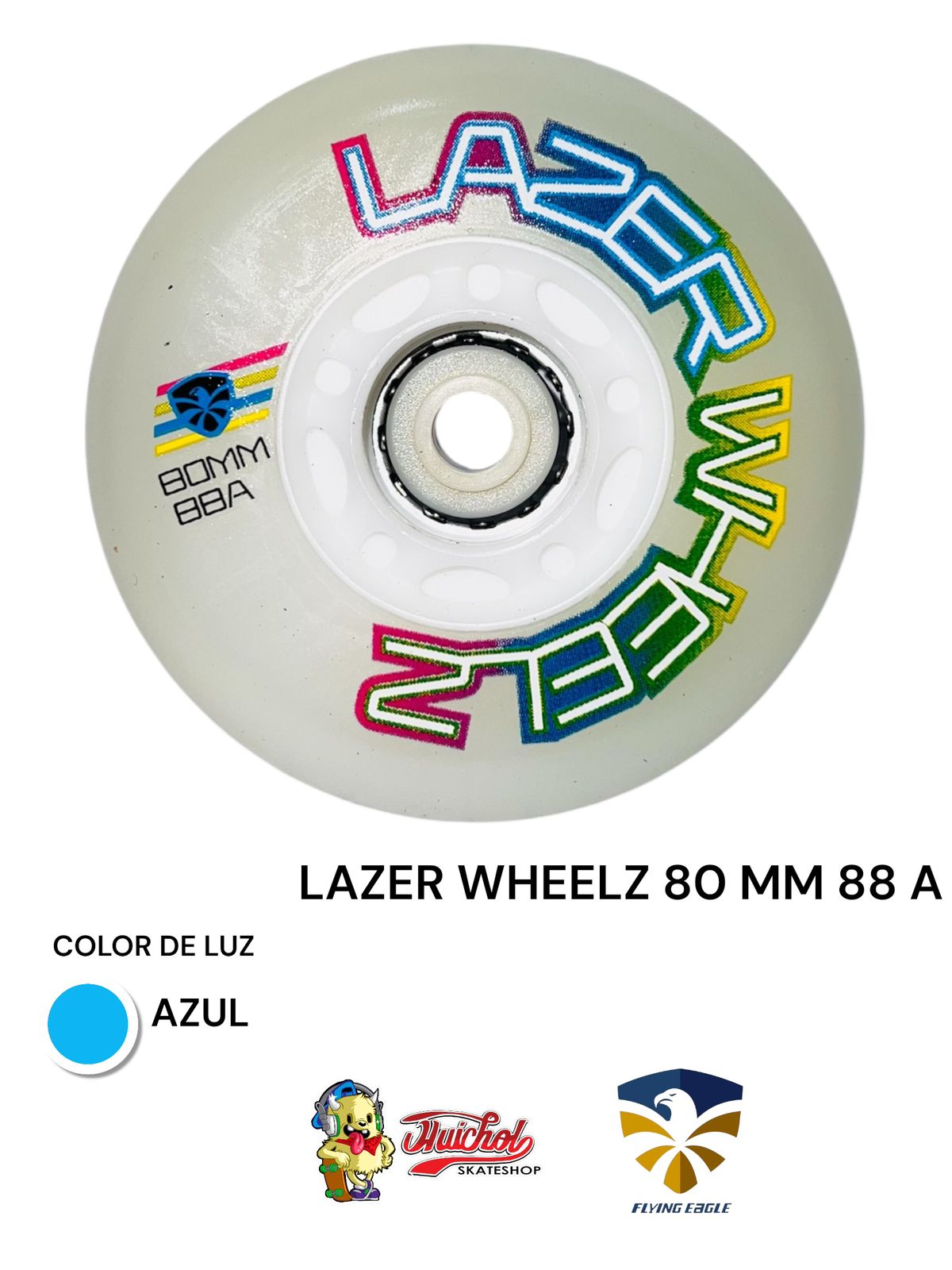 Dale energía a tus patines con las Flying Eagle Lazer Wheelz 80 mm 88A con luz azul. Rendimiento, agarre y un look vibrante en cada movimiento.
