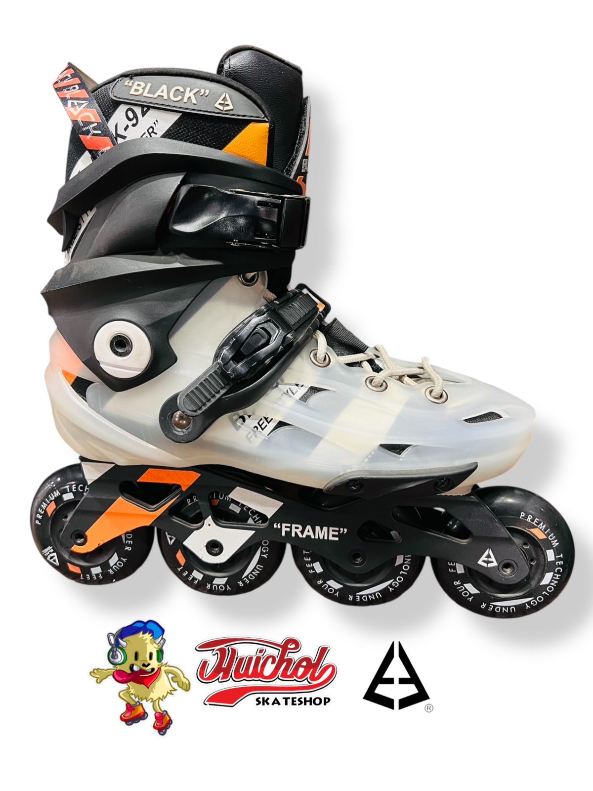 Los Patines BLACK SKATE FKS-92 combinan lo mejor del diseño urbano con tecnología premium para dar como resultado un modelo que roba miradas y conquista el asfalto. Con su bota translúcida, detalles en naranja neón y un chasis “FRAME” robusto con acabados de alto nivel, estos patines son puro arte rodante.