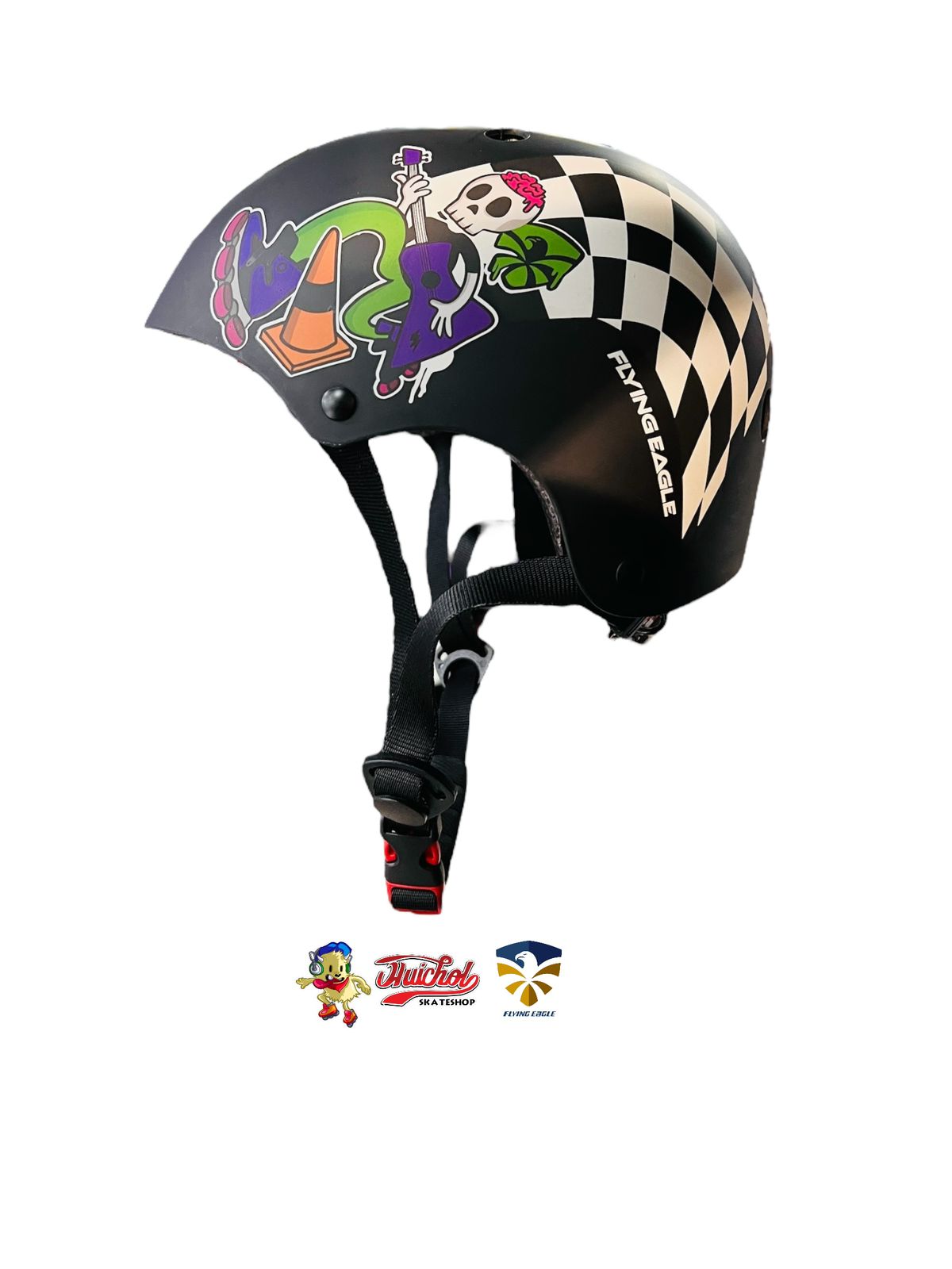 Protege tu cabeza con estilo con el Casco Flying Eagle Negro Calaca Guitarra, un accesorio de seguridad diseñado para riders que buscan marcar diferencia. Con un diseño gráfico lleno de actitud urbana – una calaca rockera con guitarra 🎸 y detalles de cuadros tipo racing 🏁 – este casco no solo garantiza protección, también aporta personalidad a cada rodada.