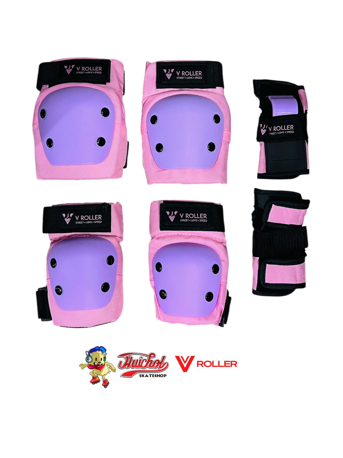Las Protecciones V Roller Rosa Lila son la combinación perfecta de protección, comodidad y diseño llamativo para tus sesiones de skate, patinaje o scooter. Este set incluye rodilleras, coderas y muñequeras fabricadas con materiales de alta resistencia y placas rÃgidas que absorben impactos, protegiéndote en cada caÃda.