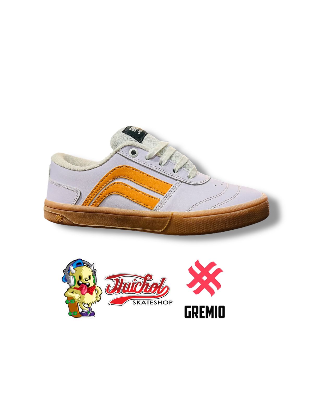 Los Gremio Goma Amarillo combinan lo clásico con un toque audaz. Su base blanca limpia resalta con detalles amarillos que aportan frescura y vitalidad, mientras que la suela vulcanizada color natural garantiza firmeza y tracción en cada paso.