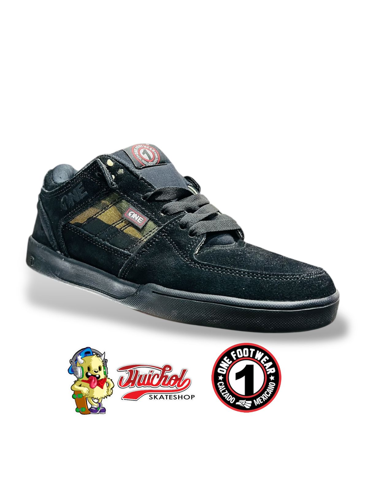 Los One Footwear 411 Low Camu están diseñados para quienes se mueven con estrategia pero sin pedir permiso. Su base negra con detalles en camuflaje verde militar crea un contraste visual fuerte y distintivo, rematado con una suela completamente negra que refuerza su carácter sólido.